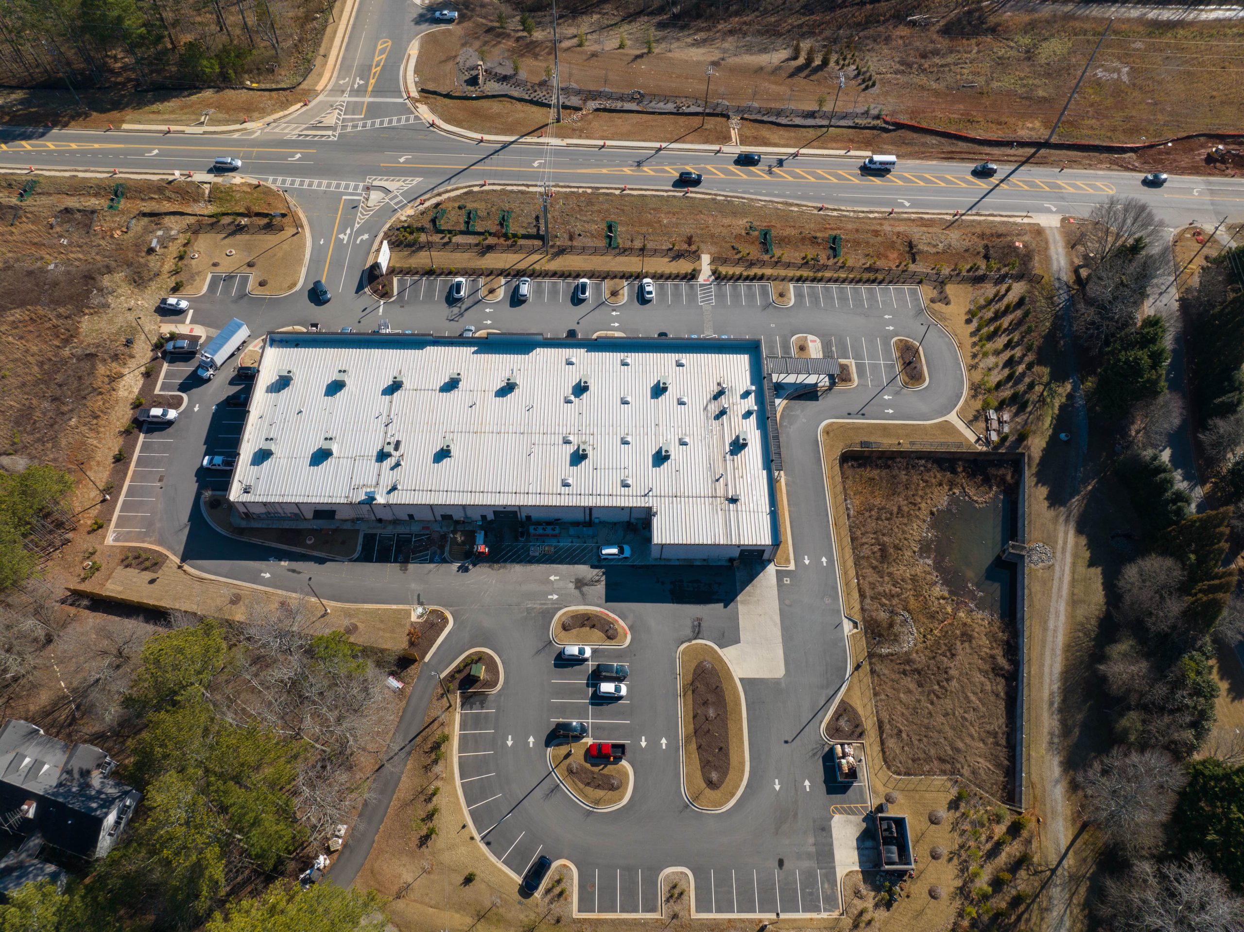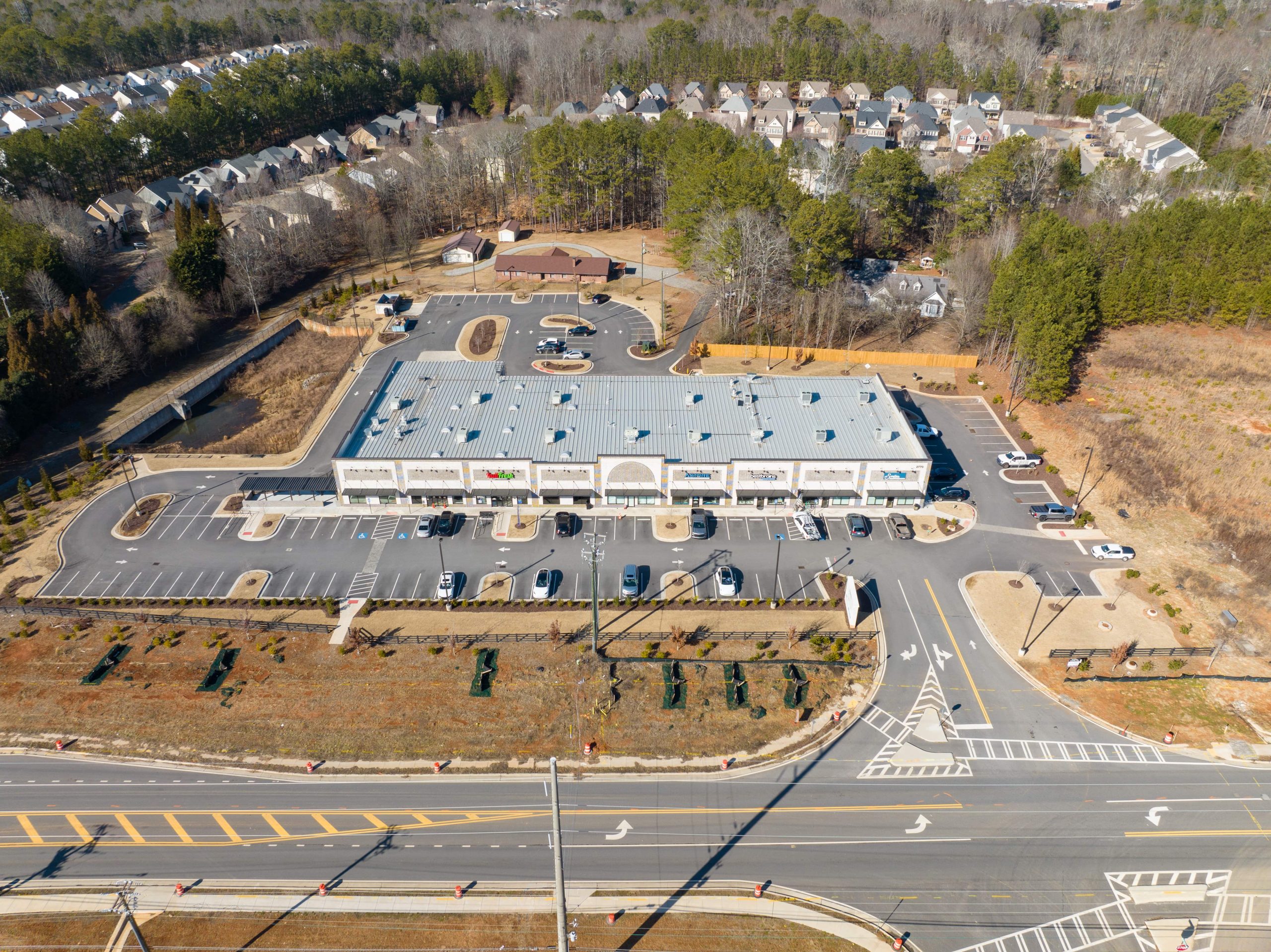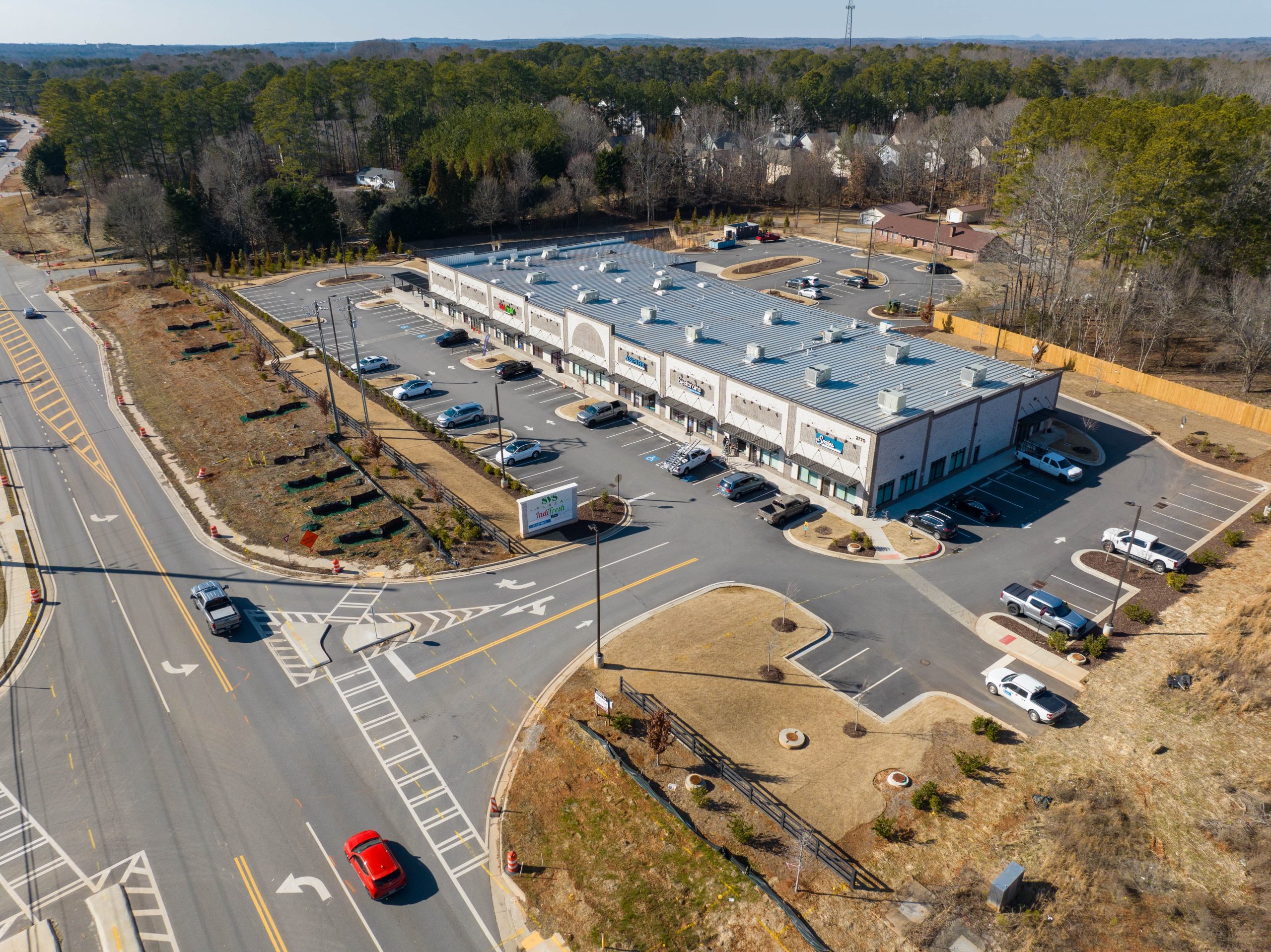 Full-access entrance was designed on SR 9 and permitted through GDOT. A 30,000 SF central building was designed Indifresh restaurant and grocery on a 4.45-acre site.